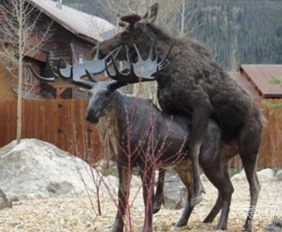 动物奇葩行为:驼鹿竟与铜像“交配”