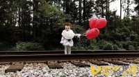 哥哥将弟弟装扮成恐怖小丑 持红气球废弃铁轨拍照