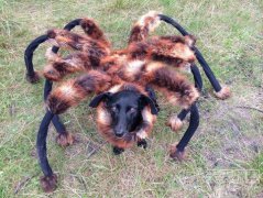 男子恶作剧将狗扮作巨型蜘蛛吓坏路人